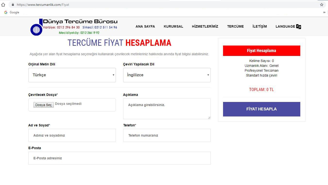 Sizler Dünya tercüme büromuz aracılığı ile bizlere ulaşmak ve İngilizce çeviri ücretleri hakkında bilgi almak için adreslerimiz ve iletişim bilgilerimizden bize ulaşabilirsiniz. Hemen hızlı bir şekilde Belgelerinize Online İngilizce tercüme fiyatları almak için bu sayfamızı kullanınız.